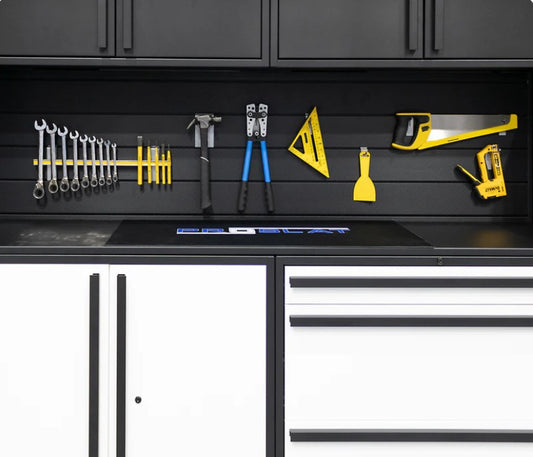 Personnalisez votre garage avec une variété de modules adaptés à vos besoins : modules d’évier, centres de boissons, surfaces de travail robustes, modules avec verrouillage complet, et bien plus encore.