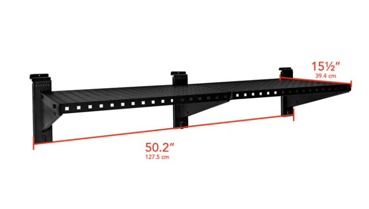 Nos derniers accessoires STEALTH sont disponibles dans une finition noire élégante avec des conceptions améliorées pour une fonctionnalité accrue. Cette étagère en métal solide, mesurant 48 pouces de large et 16 pouces de profondeur, offre une solution de stockage robuste et ventilée.