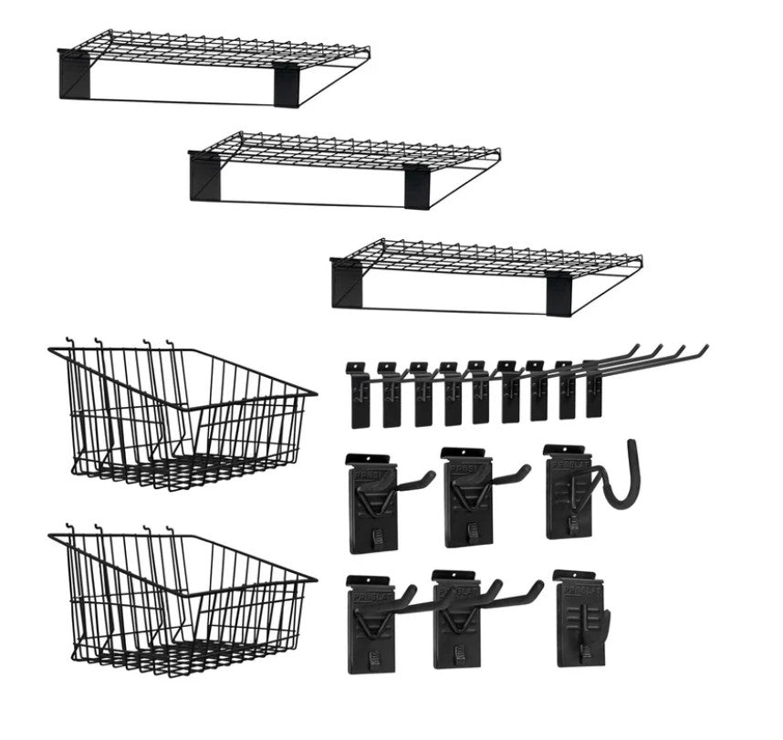 L'ensemble de crochets STEALTH 15 morceaux comprend 15 de nos crochets les plus polyvalents, ce qui en fait le kit de démarrage parfait pour tous vos besoins de rangement. L'ensemble d'étagères et de paniers en métal Proslat offre une solution de rangement complète, combinant des étagères durables et des paniers polyvalents pour maximiser votre espace. Conçu pour offrir une organisation optimale, ce ensemble à valeur ajoutée vous permet de ranger et d'accéder facilement à vos articles.